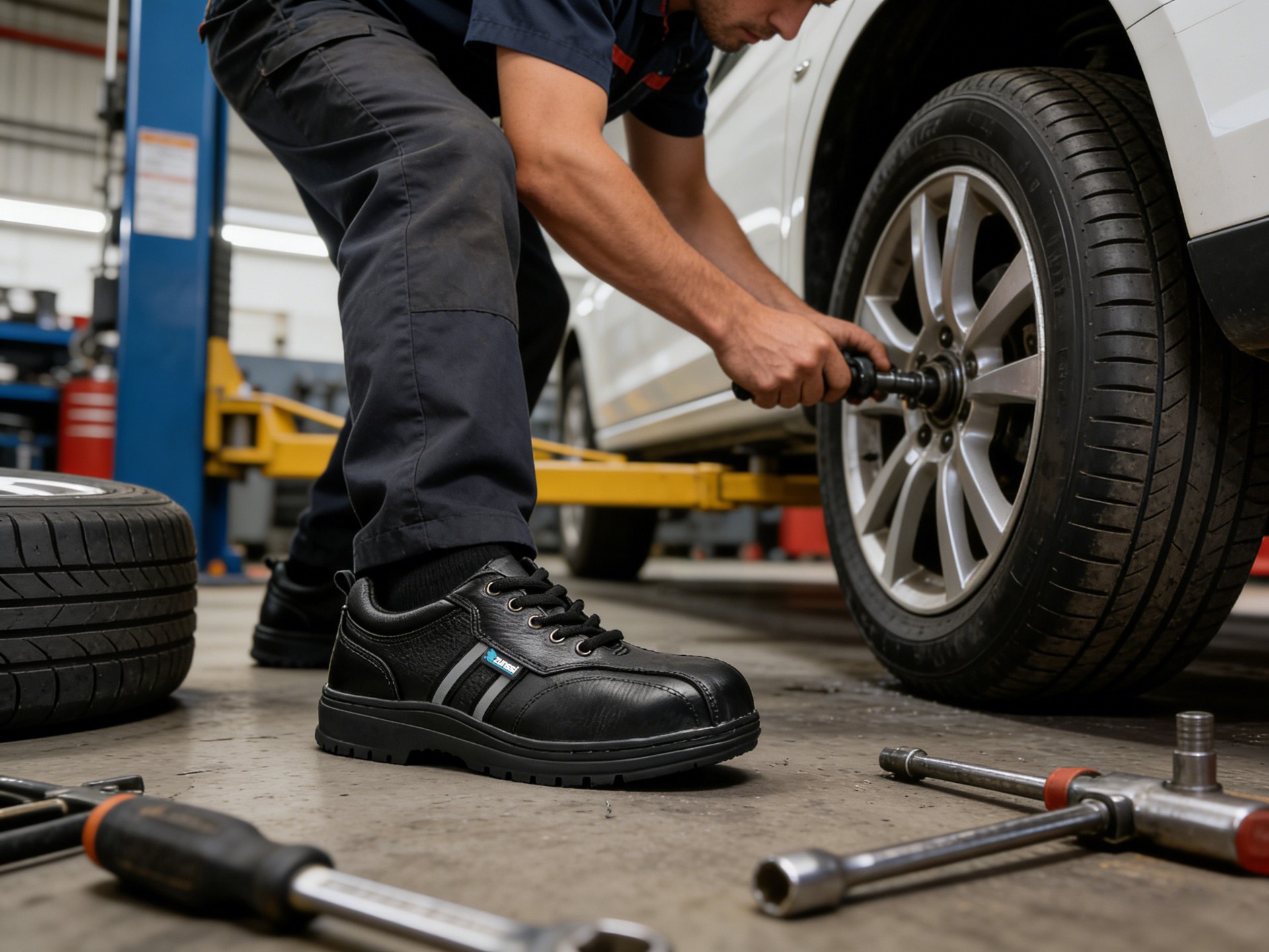 专业针对金属碎屑,高温、酸碱,工业油污等复杂环境设计。动感飘带运动设计,嵌入式银色反光条的设计,夜间工作也安全,一体防护设计牛皮帮面易打理不藏污,360度手工上线不开胶,进口头层牛皮韧性好天然橡胶耐磨防滑底更耐穿,用Comfort⑧技术的纺织衬里,可控制鞋内的空气环境。使这双鞋抵抗极端环境.