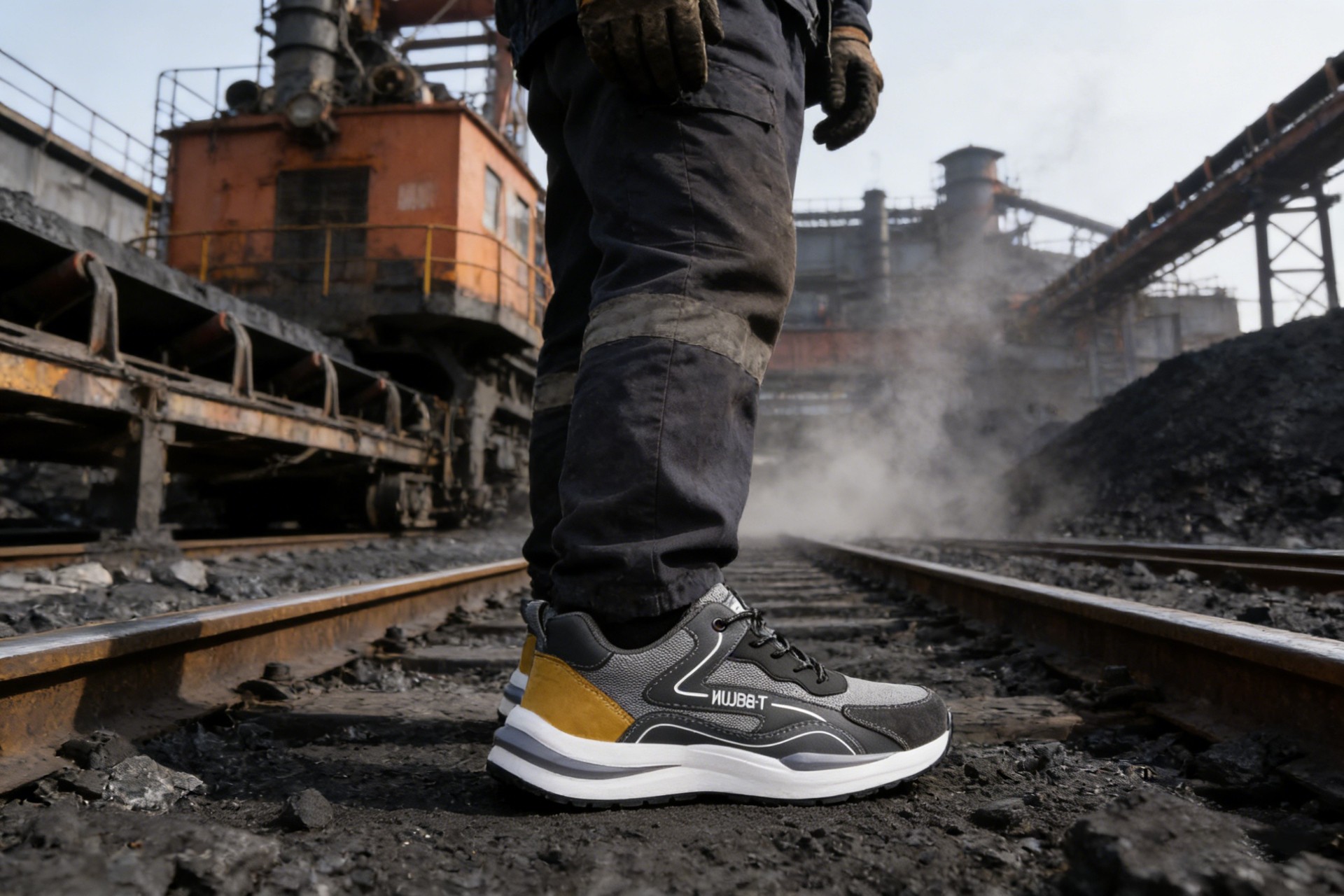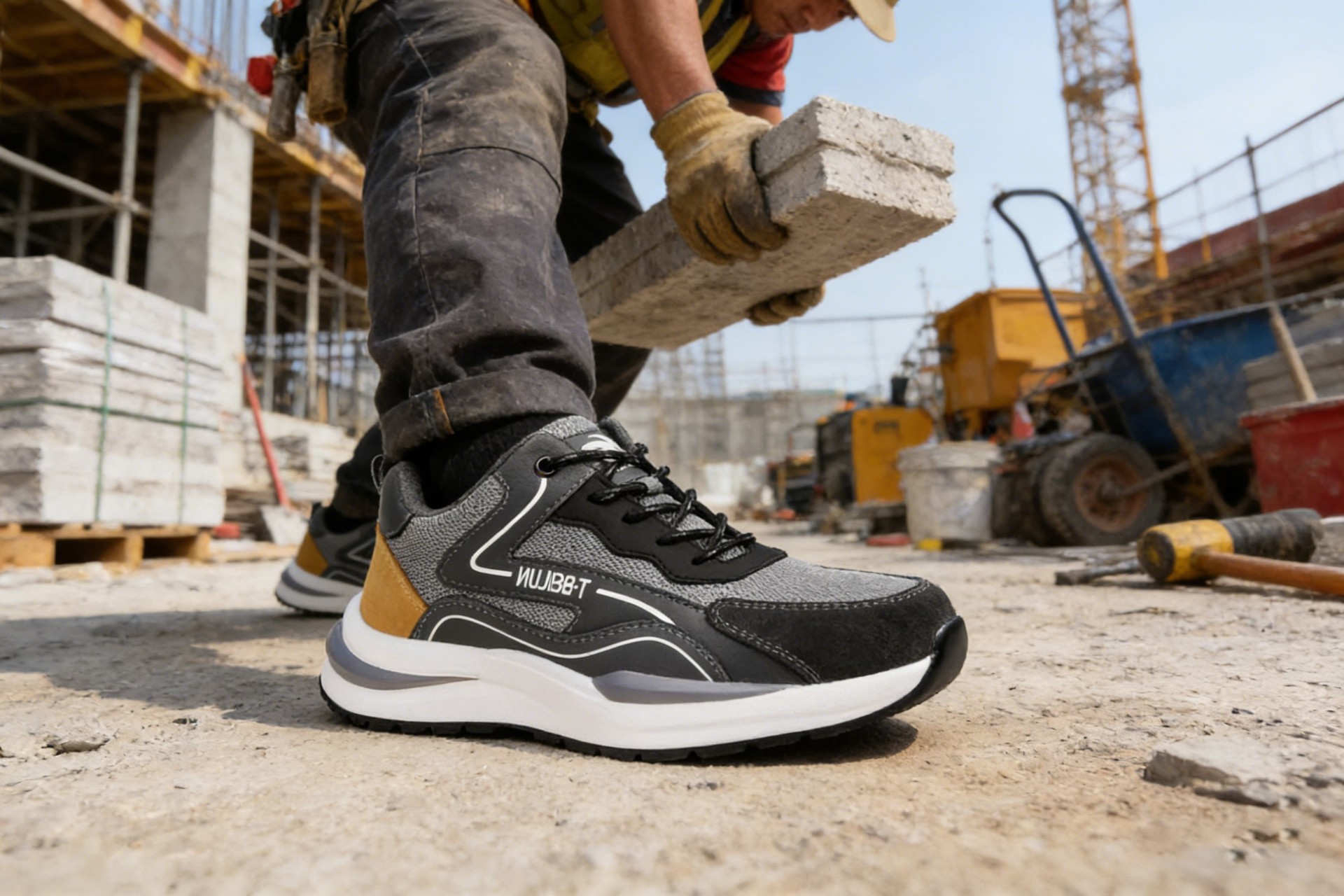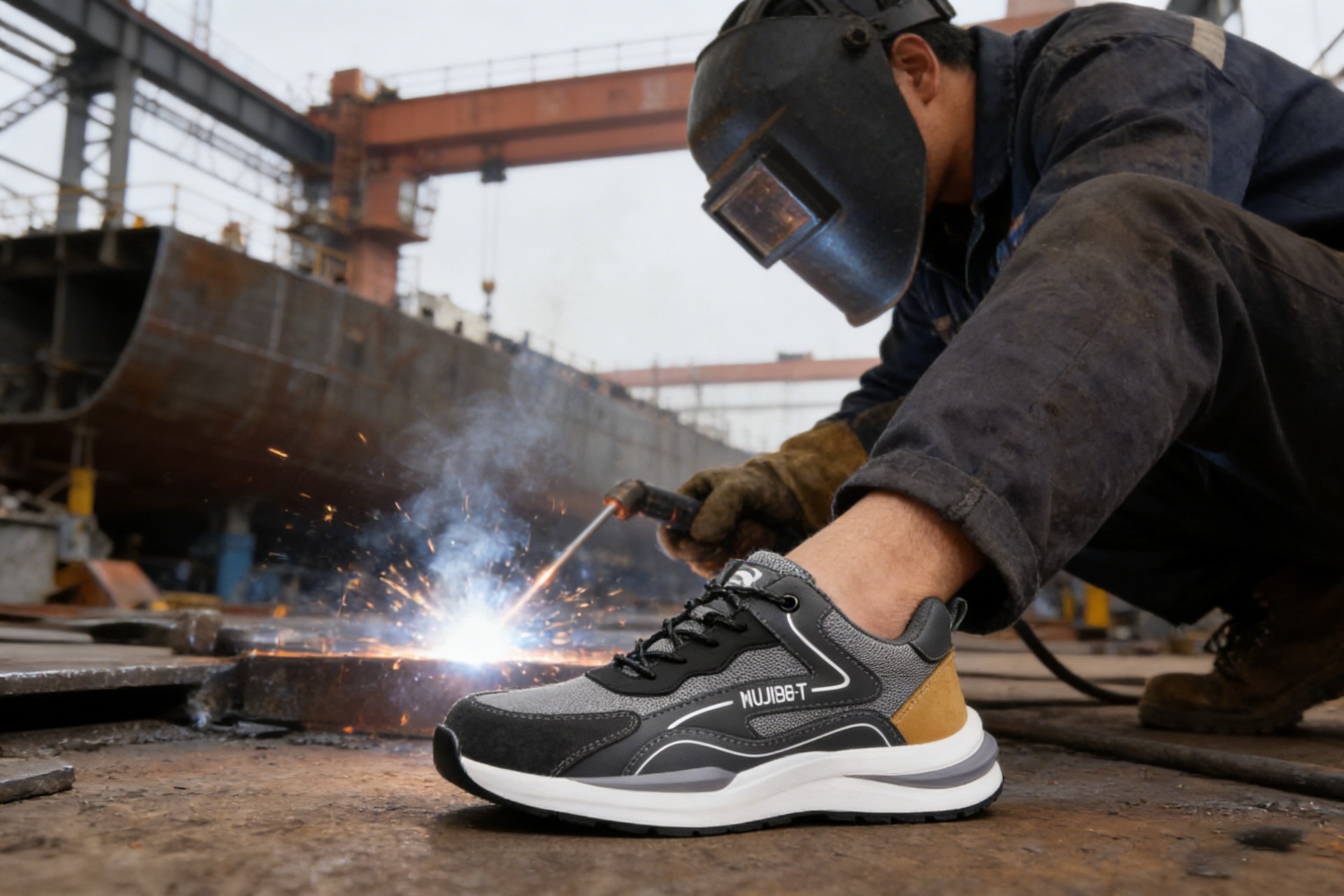本本款安全鞋采用头层磨砂绒皮 + 3D双层透气网布拼接帮面,兼具耐磨抗造性与足部透气性,有效减少闷热感。鞋底采用橡胶 + ND复合结构,橡胶外底防滑耐磨、耐油耐弱酸碱,EVA 中底轻量缓震,减轻行走负担。 内置宝丽优高弹鞋垫,回弹支撑性强,可分散足底压力,提升长时间作业舒适度。采用非金属防护设计,无磁无铁,不影响安检通行,同时为足背提供可靠防护,适配电子、仓储、物流等多类工业场景。